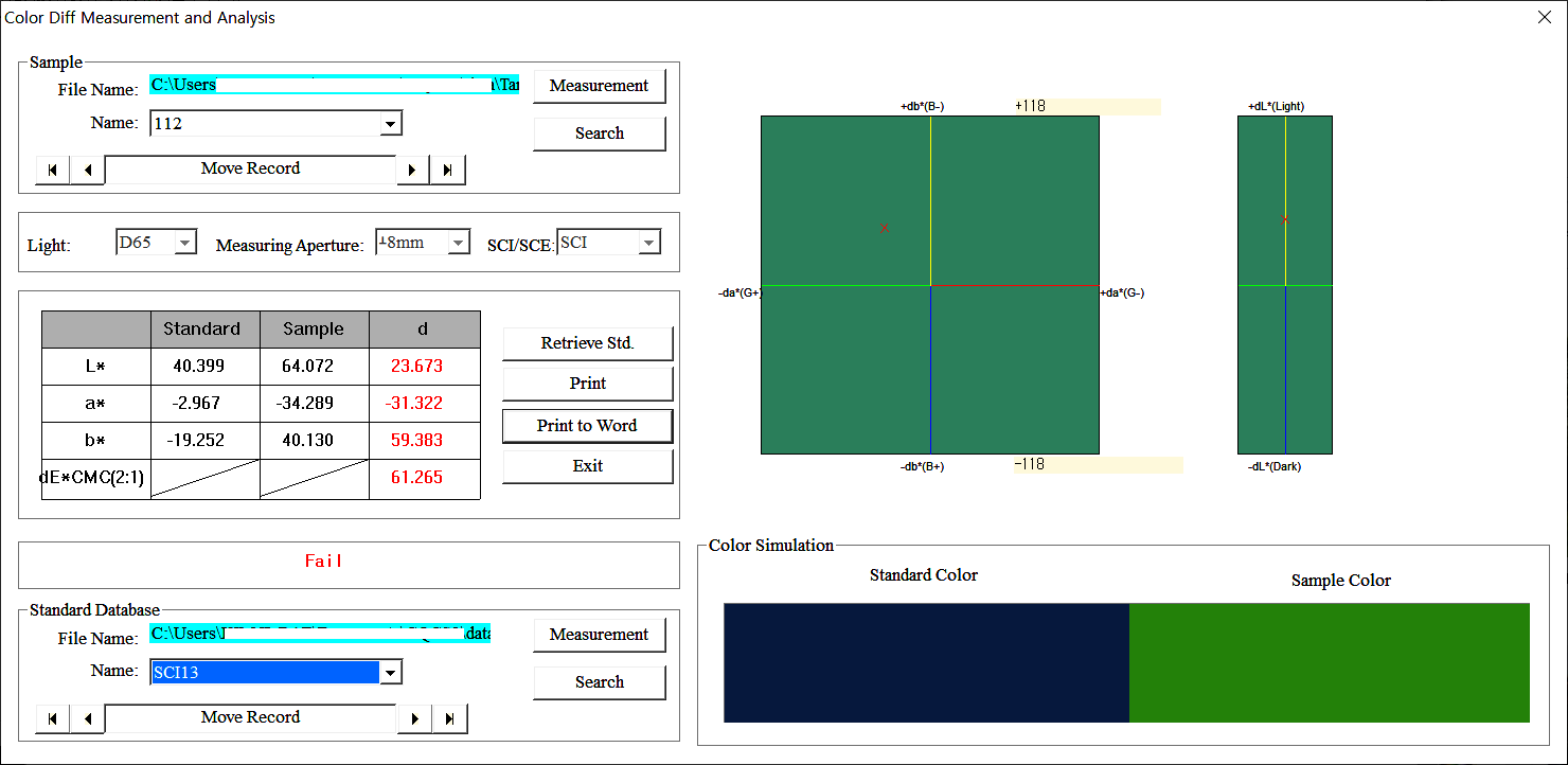 »öÂ÷°è»ê : CIE Lab1976, CIE Luv1976, CIE94, CIE2000, CMC(l:c,2:1) for textile,